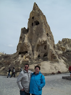 our hotel in Goreme, and it couldn’t find the right town! One thing we've learned id that a province or area is often named after a larger town, which we presume is like the "county seat". Therefore, there can be several towns with the same name, and you have to guess which one you are looking for by the province named for the nearest big town. Once here we settled into our “cave”, which
